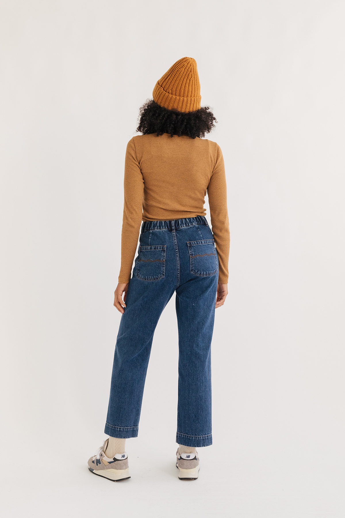 En ribbstickad gyllenbrun tröja. Det perfekta basplagget med långa ärmar och tajt passform. Plagget har vertikala ribbor med en rund, hög urringning . Tillverkat och designat i EU.